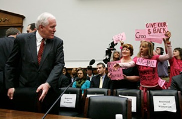 中新網3月19日電 綜合法新社,美聯社消息,美國國際集團(AIG)董事長李迪(Edward Liddy)18日在國會中說,他對支付“令人厭惡”的紅利一事,別無法律上的選擇,但他保證,接受紓困的AIG正由自己的錯誤中汲取教訓。但他在作證時遭遇多名“粉紅女郎”的圍攻,場面一度十分尷尬。