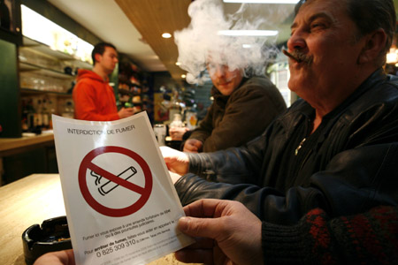 煙霧彌漫一直是法國(guó)人泡吧的特色,但為了跟上全民健康的歐洲潮流,法國(guó)終于從今年元月開始對(duì)28萬(wàn)家咖啡館、酒吧和餐館等娛樂(lè)型公共場(chǎng)所實(shí)行禁煙令,成了歐洲最后一個(gè)實(shí)行類似禁令的國(guó)家。按照法規(guī),如果有煙民在公共場(chǎng)所不幸被執(zhí)法者逮到,每次將被罰68歐元,允許他吸煙的公共場(chǎng)所經(jīng)營(yíng)者也將面臨135歐元至750歐元的罰款。另一方面,為配合戒煙,政府還煞費(fèi)苦心地將戒煙藥列入國(guó)家補(bǔ)助范圍。