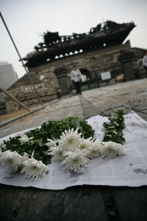 2月10日是韓國春節休假的最后一天。突如其來的崇禮門失火事件,給原本祥和的節日氣氛蒙上陰影。此后一周,痛心疾首的韓國民眾將失火現場布置成了哀悼會,“國恥”的說法不絕于耳。