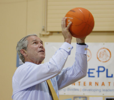 美國(guó)總統(tǒng)布什很早就預(yù)訂下了中美籃球賽的門票。