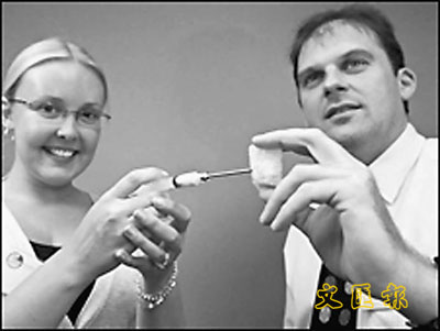中新網12月8日電 據(jù)英國廣播公司報道,英國科學家發(fā)明了一種像牙膏般的“注入式骨質”物料(見圖),無須手術,可注射入骨折部分,幾分鐘內就會硬化,形成一個生物所能分解的支架,讓自己的骨骼生長。