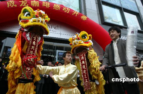 10月30日,成龍首家“成龍咖啡店”在北京新中關購物中心開業。他認為,咖啡同音樂和電影一樣,是最好的交流媒介,為此他才感覺到開創一個屬于中國人自己的咖啡品牌是必要的。中新社發 楊可佳 攝