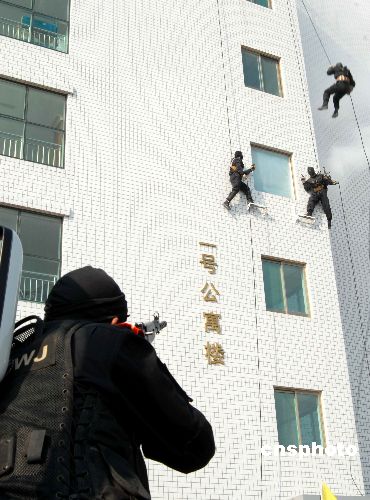 組圖:山東濰坊公安機關(guān)舉行反恐演練(2)