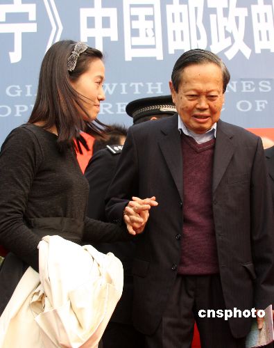 2007年11月14日,《科學(xué)巨匠、華夏赤子--楊振寧》明信片首發(fā)儀式在安徽省合肥市科技館舉行,楊振寧攜妻子翁帆出席。這套明信片共有30張照片,這些照片中不僅有楊振寧和國(guó)家領(lǐng)導(dǎo)人的合影,以及他獲得諾貝爾獎(jiǎng)時(shí)的照片,還有楊振寧與翁帆在青海踏青時(shí)的照片。中新社發(fā) 從啟 攝