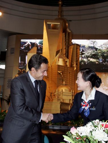 十一月二十七日下午,法國總統(tǒng)尼古拉·薩科齊到上海城市規(guī)劃館參觀,聽取上海2020年城區(qū)規(guī)劃及世博會場館規(guī)劃等情況介紹。中新社發(fā) 潘索菲 攝