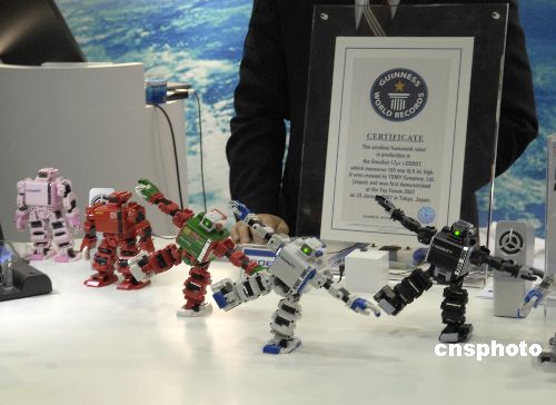 “2007國際機器人展”11月28日在日本東京國際展覽中心開幕。在為期4天的展覽中,來自世界各國和地區(qū)的199家公司、66個團體和機構(gòu)將在多達1071個展區(qū)中展示最尖端的機器人技術(shù)和相關(guān)產(chǎn)品。中新社發(fā) 侯宇 攝
