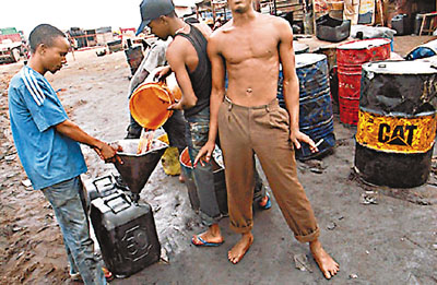 尼日利亞拉各斯的民眾公然在街頭買(mǎi)賣(mài)黑市汽油。