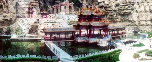 接引橋:走出洞口,出現在我們面前的便是在當年介之推母子看到過的虹橋橋基上建造的渡橋。過橋向右便可進入道家仙境——柏樹嶺、介公祠;向左就是佛教禪林——巖溝說法臺。為此,不同信仰的人們又分別叫它接引橋、仙徑橋。