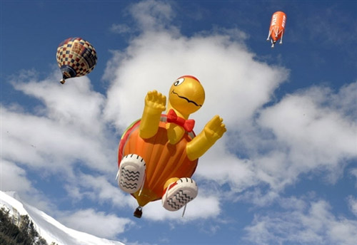 第30屆瑞士黛堡國際熱氣球節(jié)1月19日-30日在中部阿爾卑斯山區(qū)腹地的黛堡小鎮(zhèn)絢麗開場。期間有來自18個國家的140多名選手攜90多只造型各異的熱氣球參賽。