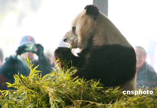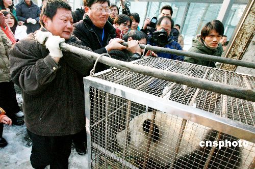 2月3日,大熊貓“蘇蘇”在蘇州動物園新居與游客見面。當天下午4時許,國寶大熊貓“蘇蘇”從徐州乘火車抵達蘇州,并在蘇州動物園內開始為期一年的展出,吸引了許多游客先睹為快,為姑蘇市民新春佳節增添喜氣。中新社發 蘇秀 攝