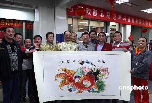 國家體育總局局長劉鵬(中),舉摔柔中心主任馬文廣和國家舉重隊隊員一起歡度除夕之夜。
