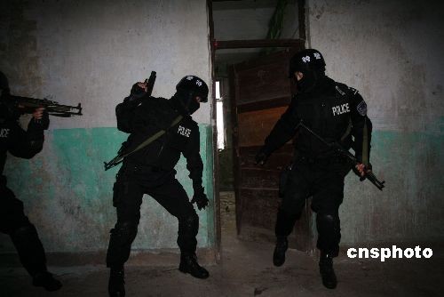 在3月14日“世界警察日”到來之前,遂寧特警冒雨訓練,隊員個個身手敏捷。遂寧特警是一支組建時間不長的隊伍,肩負著處理突發事件、急難險重任務的神圣使命,他們狠練、敢拼、善戰,為的是當好人民生命財產的守護神。中新社發 鐘 敏 攝
