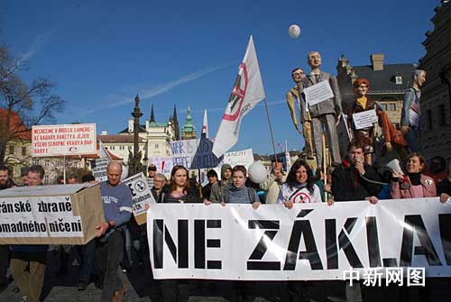 組圖:捷克示威民眾譏諷美國政府尋找戰爭借口(2)