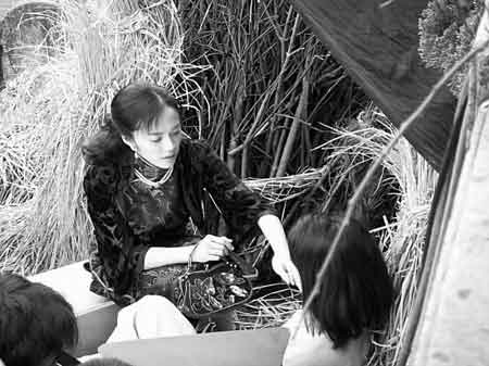 昨天拍的戲圍繞寺院中進行,他們在寺院內外,與敵特斗智斗勇。先從她和一名演員一起進香開始,三個小時下來,姚晨在鏡頭前硬是沒有笑一下。倒是拍攝間隙,因為忘記了臺詞,姚晨露齒笑了一下,“我忘詞了。”讓人見識了“郭芙蓉”的魅力。記者特選取了幾個鏡頭,看看姚晨的嚴肅模樣。