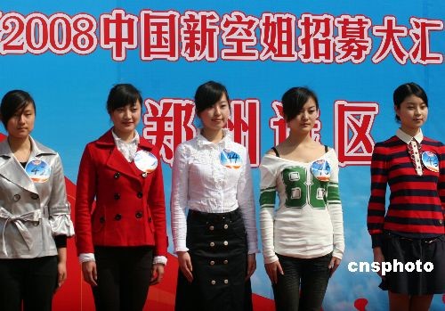 3月22日,2008中國新空姐招募大會在鄭州二七廣場舉行揭幕儀式。當日,來自全國各地的兩千多位美女云集鄭州報名應聘。據介紹,這是有史以來最大規模的空姐招募,此次招募大會計劃在全國招募500名空姐,其中鄭州地區招募55名空姐。中新社發 陳代述 攝