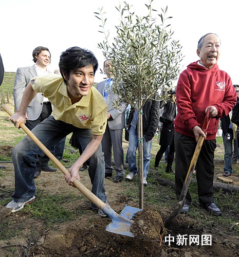 劉鴻亮王力宏等北京奧運會可口可樂火炬手在位于古奧林匹亞的顧拜旦紀念碑旁栽下一棵橄欖樹,向綠色奧運及環保事業致敬,并以此號召人們共同努力修復剛被大火肆虐的古奧林匹亞遺址。