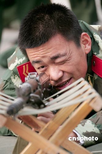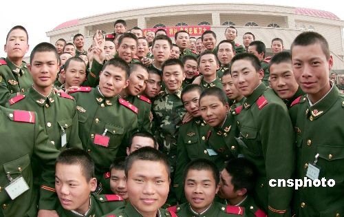 3月21日,《士兵突擊》中扮演許三多的新星王寶強,應邀來到武警河北總隊邢臺市支隊新訓大隊,與新兵面對面交談,共話軍旅人生。中新社發 余洪恩 攝