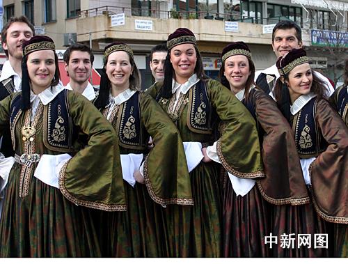 3月25日,北京2008年奧運圣火希臘傳遞第二天,慶典儀式在終點約阿尼納舉行。圖為身著希臘民族傳統(tǒng)服裝的舞蹈演員。中新社記者 王歡