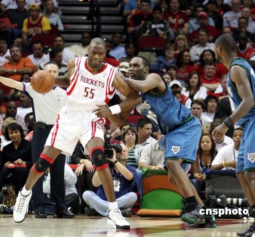 圖:姚明拄拐助威 火箭隊大勝森林狼(2)