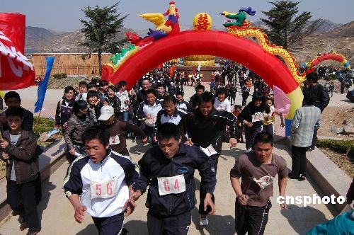 2008年4月2日,山東省日照市舉行全民健身與奧運同行萬人登山活動暨馬鬐山風景區啟用慶典,上萬名群眾利用登山健身的方式,迎接2008年奧運會。作者: 陳為峰