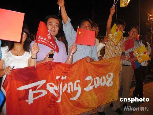 組圖:海外同胞支持北京奧運 護衛圣火傳遞 (5)