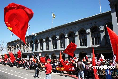 組圖:海外同胞支持北京奧運 護衛圣火傳遞 (6)