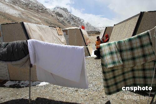 圖:珠峰大本營記者抓緊時(shí)機(jī)晾曬臥具