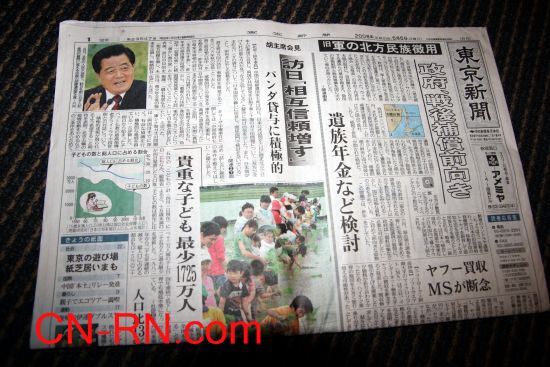 胡錦濤主席訪(fǎng)日 日本四大報(bào)頭條報(bào)道(組圖)(2)