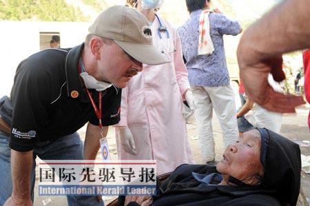 本報記者楊磊在北川縣城外的山路上見到孫柏安時,他看上去正處于一籌莫展中。一名受傷的老人急需治療,但面對孫柏安和同伴要幫忙的表態卻連連擺手!爸袊哪莻老太太大概很少見到外國人,所以不愿意讓他診斷!币环徽勚,老太太才上了醫療車。