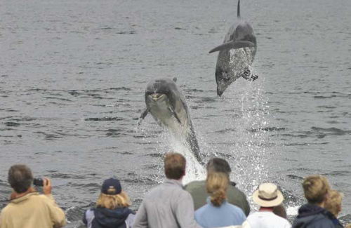 人們觀賞海豚嬉戲。
