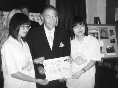 兩位幸存高中生的發(fā)言感動了所有到會的美國國會議員,當時就有美國國會資深議員巴博夫婦和前美國國會議員亞洲委員會主席沃爾特表示要收養(yǎng)四川地震孤兒。劉芳源和席鈺婷代表四川震區(qū)兒童向美國國會議員贈送了震區(qū)兒童手繪的圖畫和手工藝品。美國國會司法委員會主席康亞·科尼斯接受了震區(qū)兒童手繪的圖畫,表示將會掛在辦公室,并給每位國會議員復印一幅。