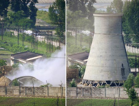 我們曾驚詫于朝鮮反復的核政策,以及六方會談協議屢次“被架空”的怪現狀。我們曾遠遠地觀望這個國家對“核”的情感,并作出各種正確或有失偏頗的解讀。如今,為了“慶!睂庍吥莻高大的冷卻塔轟然倒地,我們才得以一窺神秘的朝鮮“核”心