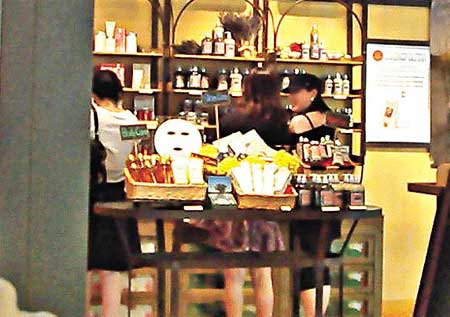 雖然鐘麗緹腹大便便,但依然十分照顧Yasmine,不時為她撥弄頭發,可謂廿四孝媽咪。她們經過電影院時,還專注地看電視播放的《功夫熊貓》預告片,十分入神。隨后,一行人又到L'occitane看香熏,不過左看右看,都揀不到合適產品,最后空手離去。
