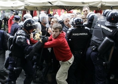 卡拉季奇被捕22日引發了卡拉季奇擁護者與塞爾維亞防暴警察在貝爾格萊德發生暴力沖突。