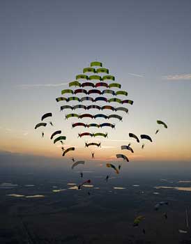 100名跳傘隊員在高空中組合成一個巨大菱形。