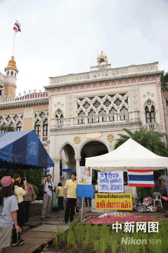 目前,聚集總理府的示威者風(fēng)雨不停,吃睡全在總理府大院里。
