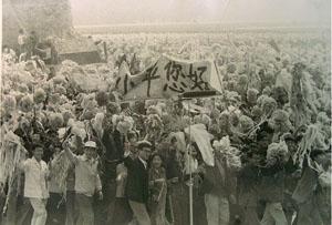 在游行隊(duì)伍中,北京大學(xué)學(xué)生舉起寫著“小平您好”的橫幅走過(guò)檢閱臺(tái)前,引起陣陣歡呼聲。簡(jiǎn)短的四個(gè)字,濃縮了深厚的感情。