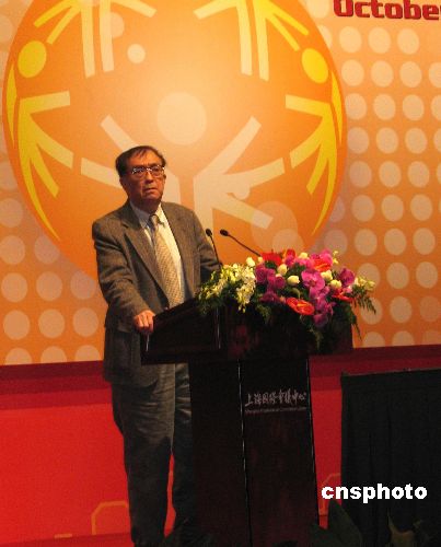 2007年10月3日,中國著名電影導(dǎo)演謝晉出現(xiàn)在上海舉辦的智障人士福利全球政策高峰論壇上。作為智障孩子的父親,謝晉以親身經(jīng)歷力陳特奧運動對智障人士起到的積極作用,他說特奧運動員自強(qiáng)不息的精神讓他深受感動。中新社發(fā) 李佳佳 攝