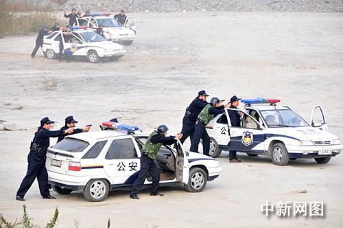 10月28日至11月2日,第三屆世界傳統武術節將在湖北十堰市舉辦。為及時、有效、妥善處置“武術節”期間可能發生的各類突發事故或恐怖襲擊事件,檢驗和提高十堰市整體處置突發事件的應急能力。10月18日上午,十堰市 “武當利劍”反恐實戰演練在十堰城區浙江路一平地上舉行。兩男子劫持一輛客車上的司機、女售票員及車內乘客共10人沖卡向浙江路方向駛去,執勤交警立即向市公安局110指揮中心報告。