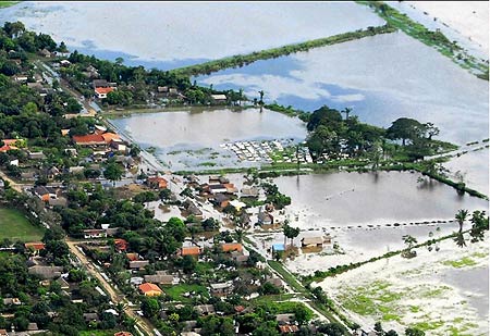 中新網1月28日電 綜合報道,玻利維亞因連日暴雨導致洪水泛濫,根據當地媒體報道,包括一名意大利人在內,洪水已經造成32人死亡。圖為中南部圣克魯茲26日的鳥瞰圖,一半以上的區域已被洪水淹沒。