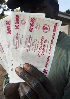 中新網7月20日電 津巴布韋中央銀行日前宣布,將發行單張面額1千億津元的鈔票,以對付失控的通貨膨脹。目前,津巴布韋官方公布的年通貨膨脹率高達2200000%。但獨立的經濟學家認為實際數字更高。