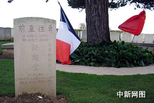 據(jù)了解,第一次世界大戰(zhàn)期間,約十四萬(wàn)中國(guó)勞工遠(yuǎn)渡重洋來(lái)到歐洲前線。他們主要集中在法國(guó)北部從事戰(zhàn)地后勤的工作,如維修道路、營(yíng)房,挖掘戰(zhàn)壕,裝卸彈藥,救護(hù)傷員,掩埋尸體等。一九一七年八月,中國(guó)政府正式對(duì)德宣戰(zhàn)后,部分華工加入法軍,直接參加戰(zhàn)斗。一九一八年九月至十一月,德國(guó)等同盟國(guó)先后戰(zhàn)敗投降,華工為中國(guó)爭(zhēng)得戰(zhàn)勝國(guó)地位立下汗馬功勞,但同時(shí)也付出了沉重代價(jià):中國(guó)勞工中有兩萬(wàn)人再也沒(méi)能踏上故鄉(xiāng)的土地,這些客死他鄉(xiāng)的中國(guó)勞工大部分安葬在法國(guó)北部諾萊特等墓園中,每個(gè)人的墓碑上都刻有中文的銘文。