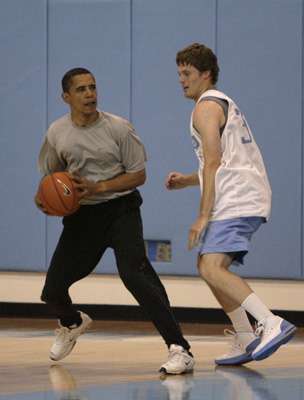 奧巴馬自己又如何呢?在夏威夷檀香山念書時,他已經熱愛打籃球,擅長跳射投籃,盤扭技術也很到家,到現(xiàn)在還經常落場演練。