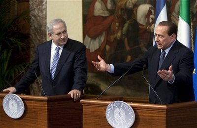 在兩位領導人召開的一場持續了近兩個小時的聯合記者招待會上,貝盧斯科尼表示,意方同意內塔尼亞胡關于建立一個非軍事化的巴勒斯坦國的看法。他表示,意大利贊同“建立這樣的國家”,正如意大利認為以色列“應獲得阿拉伯國家的承認”一樣。