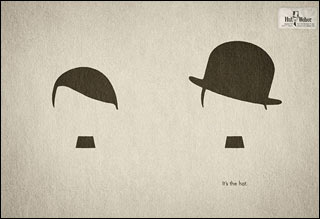據(jù)英國媒體報道,在Hut Weber公司的這則廣告中,喜劇演員卓別林的圓頂禮帽下是希特勒標志性的頭發(fā)和胡須。下方,一行英文寫道:“這就是帽子。”