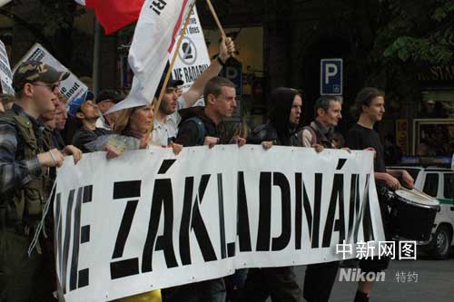 5月5日捷克民眾在布拉格再次舉行集會游行,反對政府與美國簽署雷達基地協定。(黃頻攝)