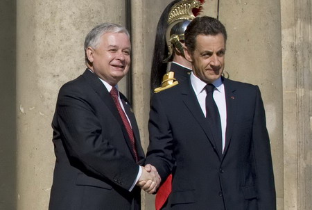 波蘭總統(tǒng)卡欽斯基(左)與法國(guó)總統(tǒng)薩科奇(右)