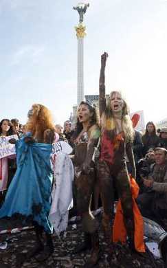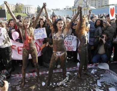 中新網10月20日電 綜合報道,一個名為“Femen”的烏克蘭青年組織19日走上基輔街頭,表演泥漿摔跤節目,以抗議“骯臟的政治和選舉技術”。女青年希望以這一方式吸引人們的注意,加入抗議提前議會選舉的行列。