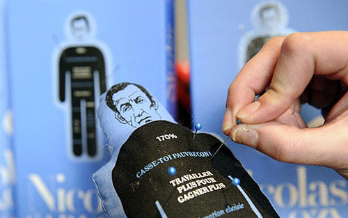 據法國媒體報道,法國K&B出版公司按照總統薩科齊的樣子制成2萬個“巫毒娃娃”出售。這種“巫毒娃娃”身上還印著一些薩科齊的“名言”,包括他主動與民眾握手遭拒后脫口而出的那句粗話“滾開,蠢貨”。