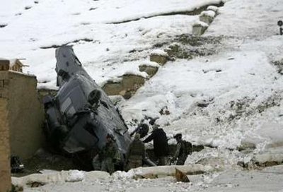 駐阿富汗美軍17日再度發生直升機墜毀事件:一架“支奴干”大型直升機在阿東部地區“硬著陸”,結果造成一名美軍喪生。同一天,阿首都喀布爾17日發生汽車炸彈爆炸事件,造成一名美軍和四名阿富汗平民被炸死。僅僅24小時前,一架美軍“黑鷹”直升機在喀布爾附近墜毀,但7名機上人員全部生還。